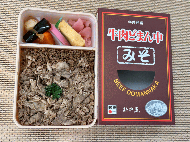 山形新幹線が開業した時に、それを記念して開発されたという牛肉どまん中。もはやすっかりと定番駅弁としての地位を固めています。