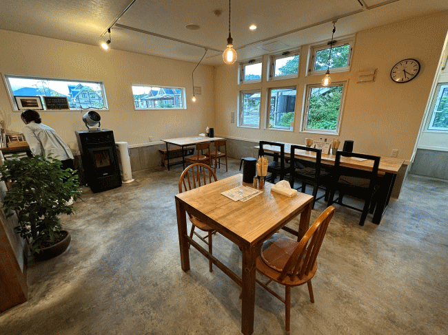 お店の内部は、こんな感じ。綺麗でしょ。向こう側の窓の向こうに、摩周駅の駅舎が見えるという、心憎い設計となっています。