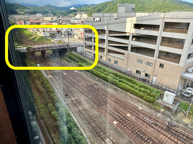 ホテルメルキュール飛騨高山から眺めた鉄道の走行シーン
