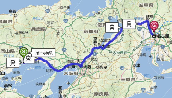 【乗車データ】 ・倉敷15:30→播州赤穂17:05(クハ115-1219・4両) ・播州赤穂17:06→網干17:27(モハ225-308・8両) ・網干17:42→米原20:25(クモハ223-2102・12両) ・米原20:31→名古屋21:41(モハ313-8・8両) |