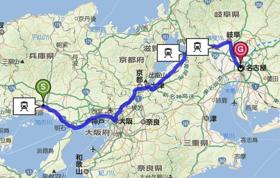 姫路から名古屋まではひたすら乗り続けるのみ。鉄分も十分に補充され、一人旅では久しぶりに観光までしてしまいました。さすがにお腹一杯という感じで、一刻も早く家に帰りたい気分でした。