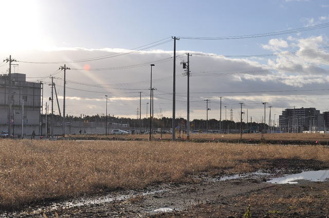 駅周辺は土地区画整理事業が進行中で、開発前夜といった感じです。東日本大震災で津波を食い止めた仙台東部道路もすぐ近くです。この駅でも開業を祝う装飾等はなく、少々寂しい感じです