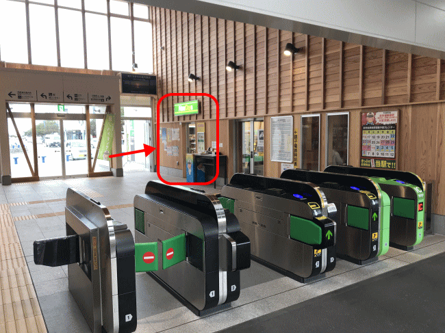 銚子の鯖寿司の売り場の情報です。銚子駅のホームから、改札口ごしに眺めた、売り場の入り口が下記になります。JR東日本のコンビニであるニューデイズで、鯖寿司が売られています。