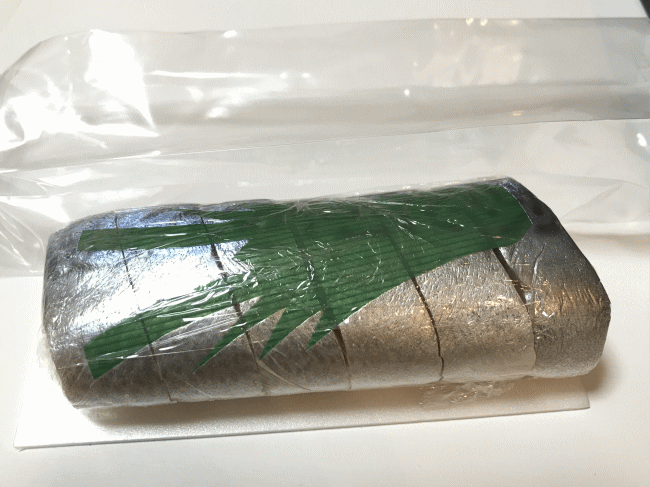 分厚いフィルムを開封すると、ラップに巻かれた状態の鯖寿司が出てきます。厳重ですね。でも、食べるとその訳が分かります。