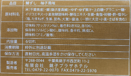 | 製造 | 有限会社銚子プラザホテル 千葉県銚子市西芝町11-2 0479-22-5970 https://www.choshiplaza.com/ |