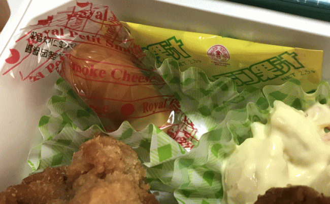 スモークチーズが添えられているのも、面白いですね。これのおかげで、ワインでも傾けながらチキン弁当を食べたくなってしまいます。まさに、大人のお子様ランチです・笑。