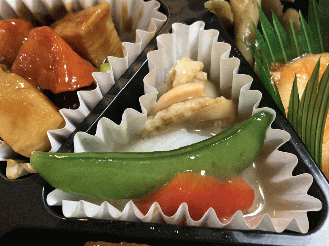 もちろん、冷えた状態での味わいを徹底的に研究している崎陽軒ですから、素材の味をとことんまで引き出しており、太鼓判を押せます。スナップエンドウの鮮やかな色合いが、余計に食欲を増進させるような気がします。