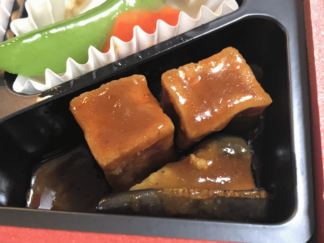 この、厚揚げの麻婆にも仰天しました。豆腐を使うと水っぽくなって、お弁当としては台無しになってしまいかねませんから、そこを厚揚げに変更する事で、問題を解決しています。まさに、駅弁屋の冴えわたるような技術だと思いますね。