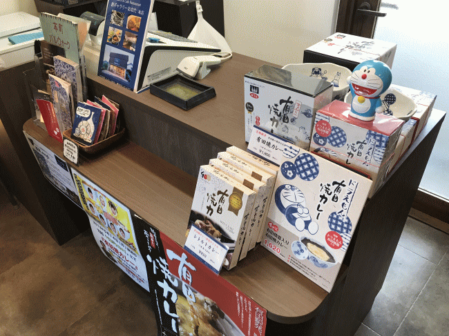 レジ横にはレトルトパックの「有田カレー」も置いてあります。焼き物が付かないので、有田焼カレーではなくて有田カレーです。私などは既に、ドラえもんも含めて有田焼カレーの陶器は2つ保有していますから、次回訪問時にはレトルトパックのものを買いたいなと思いました。