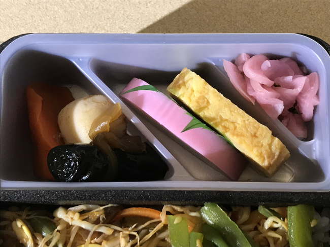 副菜は、内容としては以前とは変わりませんが、あらかじめ仕切りの付いたプラスチック容器をはめ込むスタイルに変更になっています。こちらの方が、見た目も良いし製造の手間もある程度省けそうで、一石二鳥ですね。