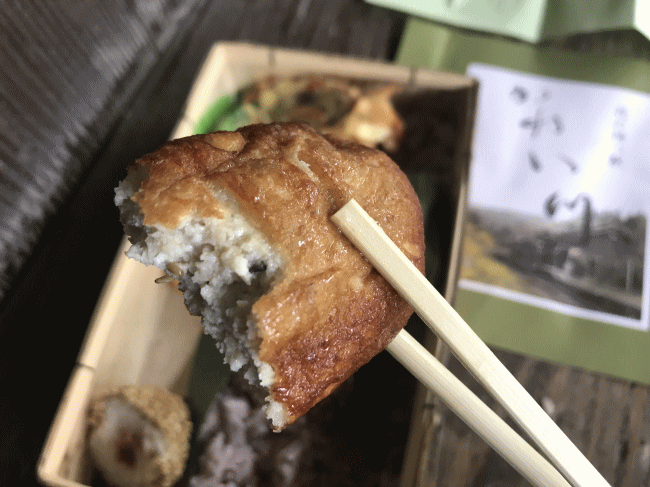副菜も、とても副菜と称して良いのかどうか迷うようなものばかりです。左から、スセと呼ばれる酢の物、千切り大根と蒟蒻の煮物、茄子の味噌田楽です。駅弁で茄子が入るのは珍しいですね。そして、手作りだと分かるような茄子の味わいに、じんわりとした感動がありました。