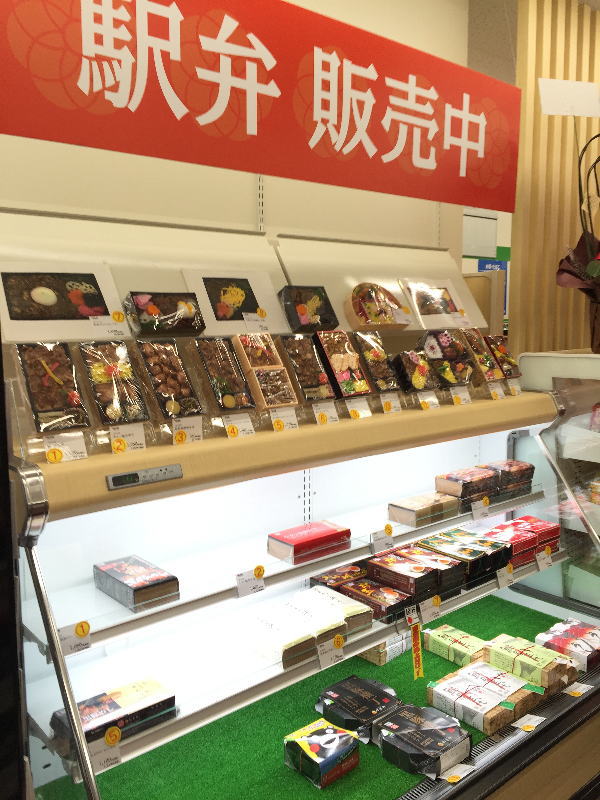 熊本駅の新幹線改札口を出たところにある売り場で、見つけました。下記写真、よく見ると、以前に東京駅で購入したことのあるくまモン駅弁・くまもとあか牛ランチBOXも置いてありますね。