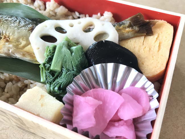 さて、まずは甘露煮が乗っかった、通常バージョンの鮎屋三代。真っ先に鮎の甘露煮を口にすると、「これは!!!!」、かつて食べたあらゆる駅弁の魚の甘露煮の中で文句なし、一番美味しいです。思わず絶句してしまうくらい。