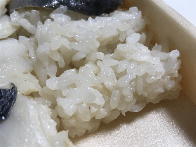 1つ上の項でご紹介した鯵の押寿しよりも鯵の身が大きいのが特徴で、酢飯に包み込むように出来上がっていますね。また、鯵の綺麗な薄皮に、より強く印象付けられます。まさしく「光り物」だなという感想と共に頂くことになりますね。
