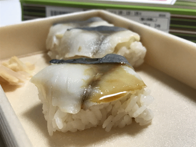 引き続いて、こちらこそが大正時代に完成した逸品、伝承・鯵の押寿しです。ここでは、東横イン鶴見駅東口に宿泊した際に購入したものを掲載します。
