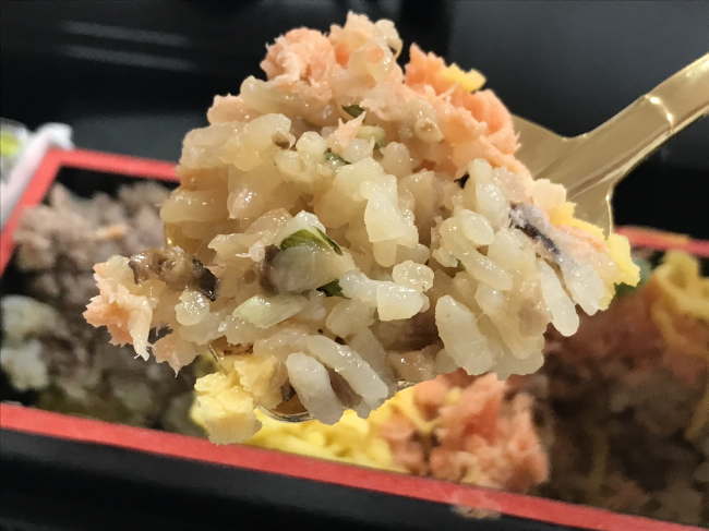 個人的には、このますの料理には、ちらし寿司よりも炊き込みご飯のほうが合うなと思っているので、「従来」の日光埋蔵金弁当のほうが好みでもあります。