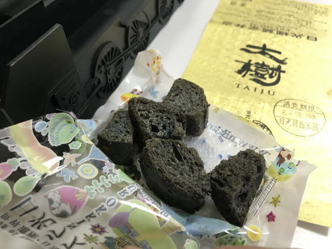 食後は、石炭をイメージしたラスク。これがまた、非常にサクサクとして美味しいのです。しっとりとした酢飯を食べた後に、カラッとしたラスク。食感のあまりの違いに目を見張りますね。そして、より駅弁を食べた印象が深まります。お見事です。