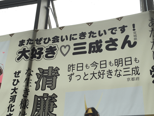 ところで湖北のおはなしの販売駅である米原駅、ちょうど2016年のNHK大河ドラマ・真田丸で、堀北真希の旦那の山本耕史が熱演する、石田三成が「ブーム」です。今までの石田三成の描き方と違って、一途な男として描かれていて、それに萌える人が続出しているようです。