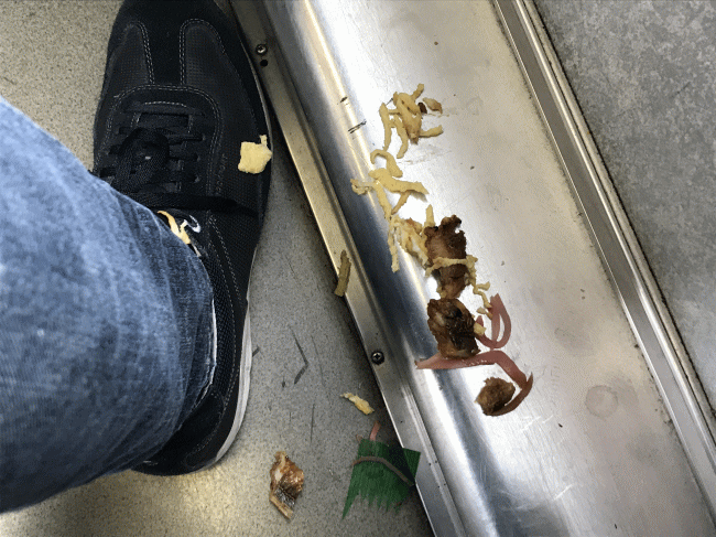 開封して食べる直前で、揺れる特急車内で駅弁をひっくり返す失態