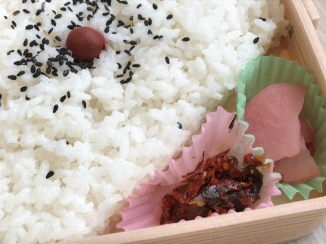 そのご飯は、白米に胡麻を振って梅干しを乗っけて、そして佃煮に漬物を添えたスタイルです。ご飯の分量が多めに感じます。ガッツリと食べられるので、旅の途中に腹をすかせた時には、最適な駅弁ではないかと思います。