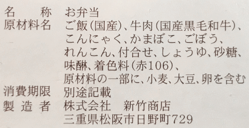 | 購入場所 | JR松阪駅の新竹商店の駅弁売り場にて購入。 |
