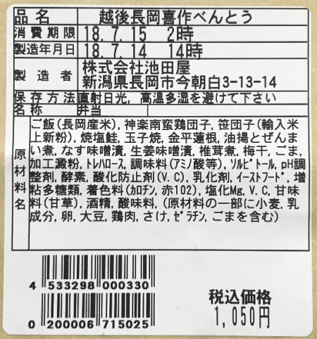 | 製造販売 | 株式会社池田屋 新潟県長岡市今朝白3-13-14 0258-33-2430 https://ekiben-no-ikedaya.shopinfo.jp/pages/1799681/menu |