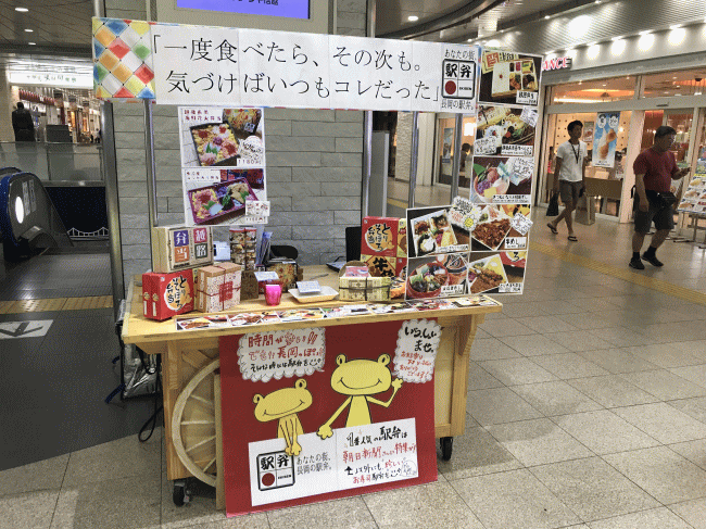 在来線の改札口を出たところに、駅弁業者の池田屋さんの立ち売り売店がありました。非常に手作り感満載の売り場です。池田屋さんは「規模拡大ではなくてむしろ徹底的に縮小して生き残りをかける」と何かの記事で読んだことがあり、なるほど、こういう事かと納得した気持ちです。