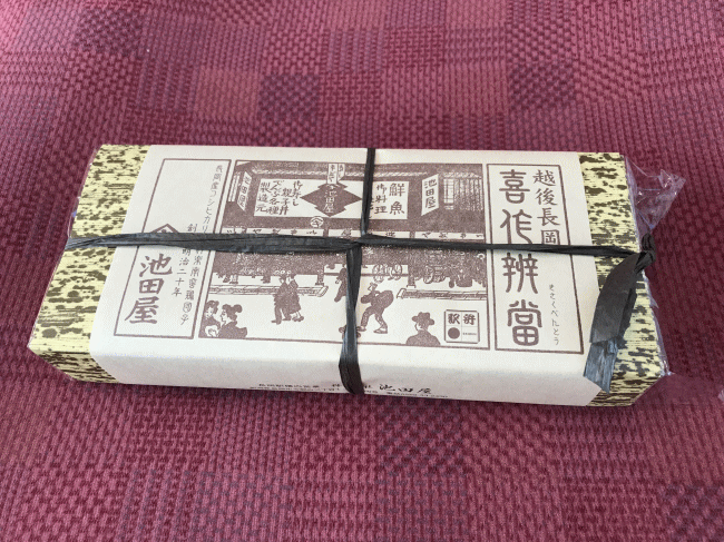 が、それでは駅弁のファンとしてはアカンという事で、新潟から東北にかけての乗り鉄の折に長岡駅で下車して、長岡で人気ナンバーワンと言われる越後長岡喜作弁当を予約して購入した次第です。