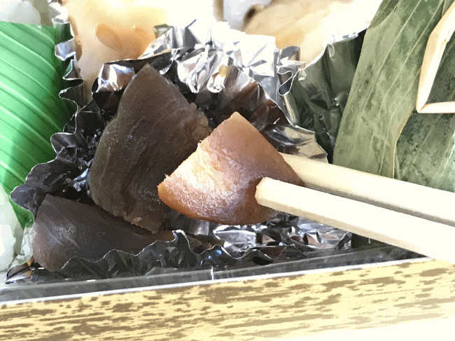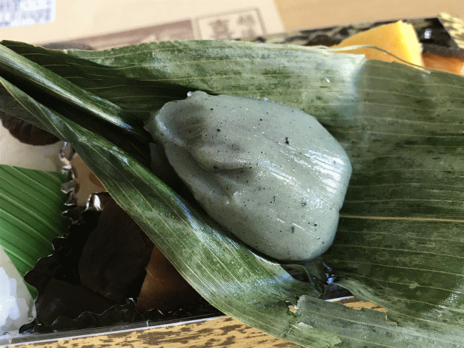 そして嬉しい事に、デザートとして笹団子が入っていました。本物の笹にくるまれた団子を食べて、満福&大いに幸せ、といった気分になったのでした。