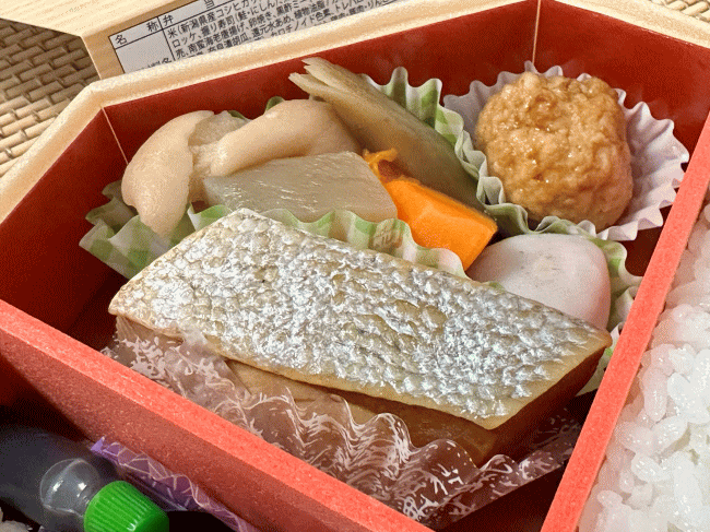 煮物の隣には、ひときわ驚いた、ぶりの焼き漬け!この駅弁屋は鮭の焼き漬けが絶品な事で有名なのですけど、まさかぶりでもこんなにも美味しいとは想定外でした。
