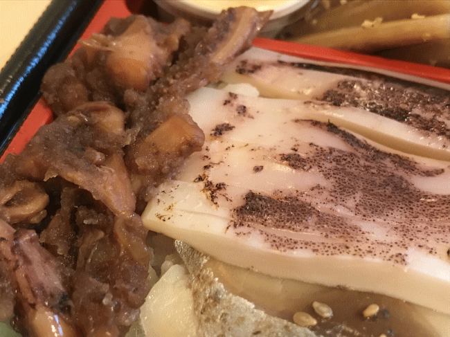 地域的には三沢沖は下北半島と同じエリアなので、適度な価格でのイカの調達にはご苦労が御有りだと思いますが、高級魚となりつつあるイカを駅弁をたっぷりと食すことができるのは、旅人として無上の喜びであります。というか、ここまでイカがたっぷりの駅弁、他に有ったっけ??