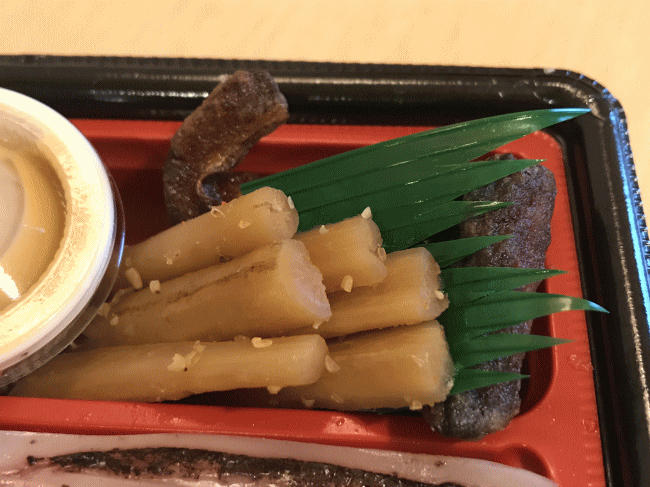 なお、鯖に関しては、竜田揚げも入っていました。副菜のごぼうの醤油漬け(ごぼう煮ではなくて、ここでもひと工夫している!)の陰に、ひっそりと隠れています。