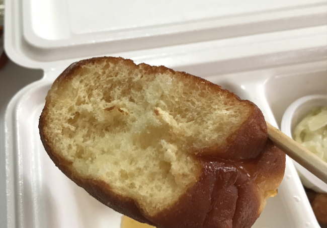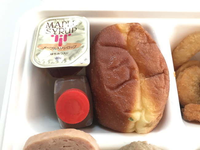 本来は、揚げた後に砂糖をたっぷりとまぶしたものがマラサダのようですが、流石に駅弁として、砂糖が飛散するようなものは相応しくないので、メープルシロップを付けて食べるように改良されたようです。