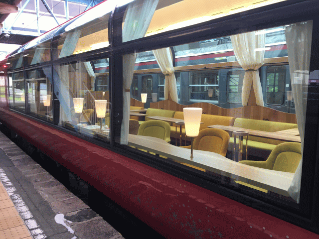 下記、雪月花の車内をウロウロと見て回った時の動画です。2両編成で、こじんまりしています。それぞれの車両で色合いや明るさが全く異なり、両方の車両に乗りたくなります。