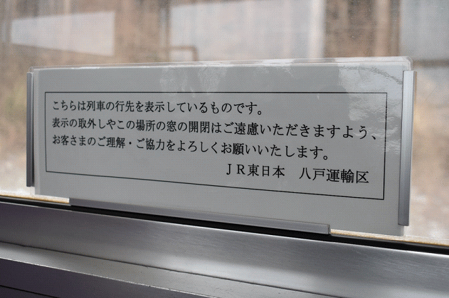 八戸線キハ40のサボは、何故か窓の内側に設置されています。