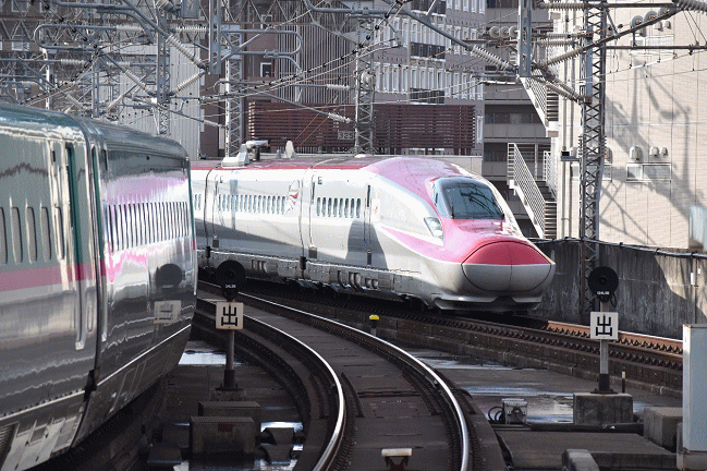 仙台からは東北新幹線「はやぶさ1号」に乗車。盛岡までは「こまち1号」が先頭です。「はやぶさ1号」は土曜日とあってか、ほぼ満席に近い乗車率。仙台では晴天でしたが、一ノ関を過ぎた辺りから吹雪となり、積雪も一段と多くなります。9:21、八戸到着。曇天ながら、雪は止んでいます。