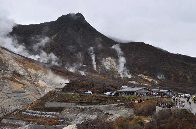 相変わらず天気は冴えませんが、満員の箱根ケーブルに閉口しつつも、ロープウェイに乗り継いで、立ち入り規制の記憶がまだ新しい大涌谷に行きます。