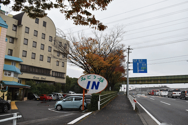 歩いている途中で「トレインビュー」の可能性があるホテルを発見!道路を越えている高架橋が衣浦臨海鉄道半田線で、ホテルの横を通過して画面左方面が半田埠頭駅です。しかし半田線の列車は半田埠頭13:13着と16:12発の1日1往復(日曜日運休)だけ、「トレインビュー」を楽しむには、ハードルが高そうです。