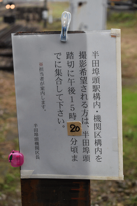 しばらくすると係の方がやってきました。どうやらすでに構内の一部は開放され、多くの方が活動をされているようです。この踏切に集まったのは5名程、機関車の入換作業が終わった後、先に活動されていた方と合流したうえで、私も無事、撮影活動を行うことができました。