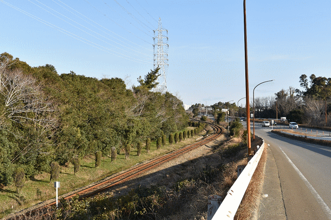 碧南市行貨物列車の終点到着は平日9:04、土休日8:47で、その数分前にここを通過する予定です。前述のように貨物列車の通過時に完全順光となるのは冬場に限られますが、道路築堤やガードレールの影が手前に落ちているのが気になります。(2019.2.10 8:18)