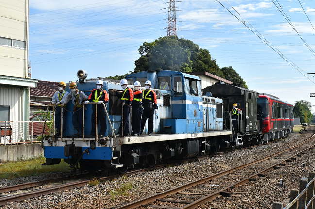 片方の機関車を解放し、ND5529が単機で牽引し大江駅に向けて発車しました。 (2020.9.21 9:44)