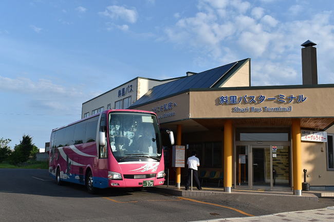 定刻より数分早く知床斜里駅前の斜里バスターミナルに到着しました。ここでは私を含めて3名下車、他の方は地元の方のようです。バスターミナルは待合室とお手洗いが使用できて便利、すぐ近くのセイコーマートは朝6時から営業開始で朝食を調達することができました。なおバスは、数分停車後に終点のウトロに向けて出発していきました。 (2023.6.25 5:39)