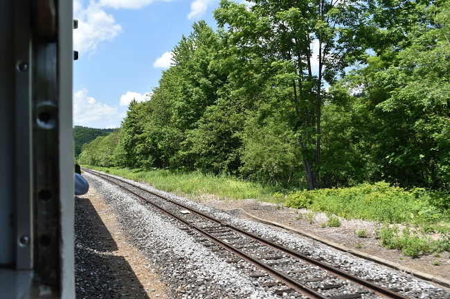 晴天に恵まれ気温は30度近いものの、窓からの風は爽やかです。窓が開く列車は最近では非常に貴重で、また久々の体験でもあり、かつての鈍行列車の旅の記憶が蘇りました。しかしこのキハ40系も置き換えが進んでいて、窓の開く列車の旅ができるのも長くはないことでしょう。(2023.6.25 10:53)