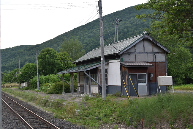 駅舎の残る下白滝信号所で特急「大雪1号」との交換で15分間停車します。信号所での長時間停車は貴重な体験です。なお丸瀬布で高校生が下車すると、いよいよ車内の客は通な旅人ばかりとなりました。(2023.6.25 14:02)