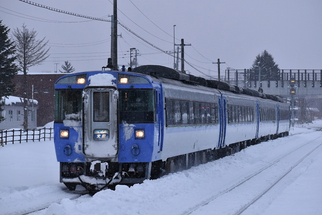 当時は183系が担当していた特急「大雪4号」です。この日は少々遅れて上川駅に到着しました。(2022.1.8 15:41)