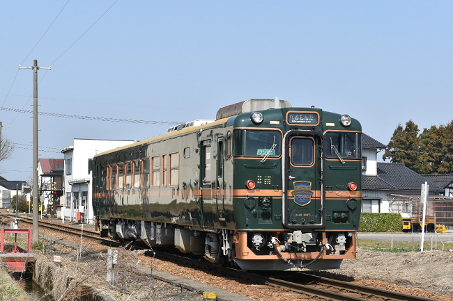 高岡から9:38発臨時快速「べるもんた51号」城端行に乗車します。一人旅の観光列車は躊躇したものの、先日乗車したJR九州の「ふたつ星4047」が余りに素晴らしく(グループ6名での乗車でしたが…)、約3週間前の2月25日に何気なくネット予約の「e5489」を確認したところ、空席があったので取り急ぎ予約した次第です。