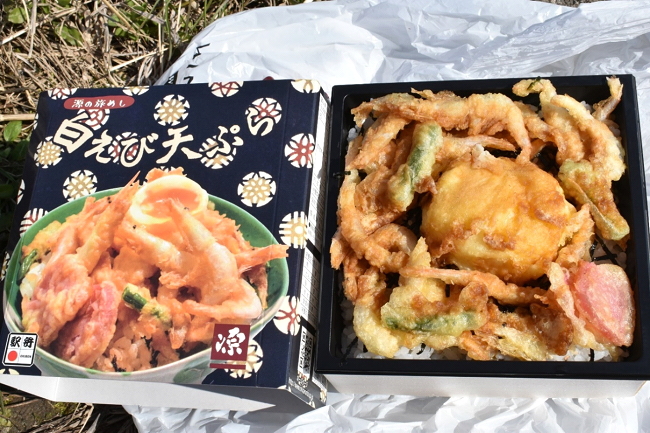 次の撮影活動を行う前に、新高岡駅で「白えび天ぷら」(1050円)を購入し昼食とします。
