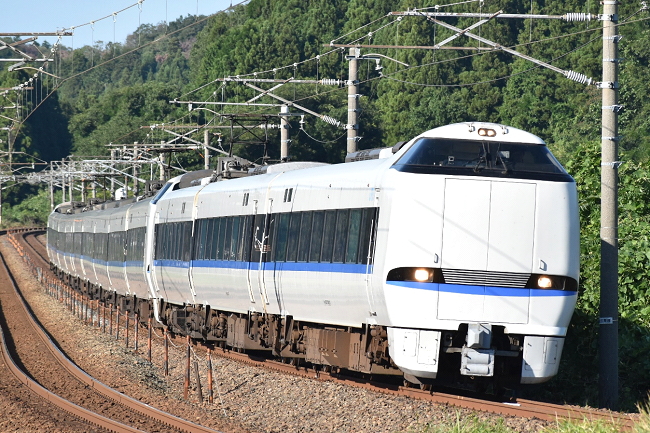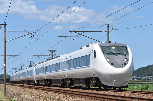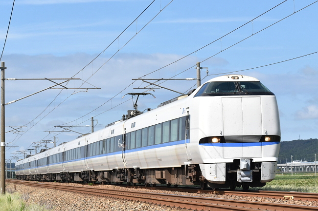 懲りずに日を改めて再び芦原温泉~丸岡で特急「サンダーバード24号」大阪行を撮影します。8月よりは過ごしやすくなり、この日の福井における最高気温は30.2度でした。午前中雨だったためか、私の到着時には同業者はいらっしゃいませんでした。(2023.9.9 13:59)