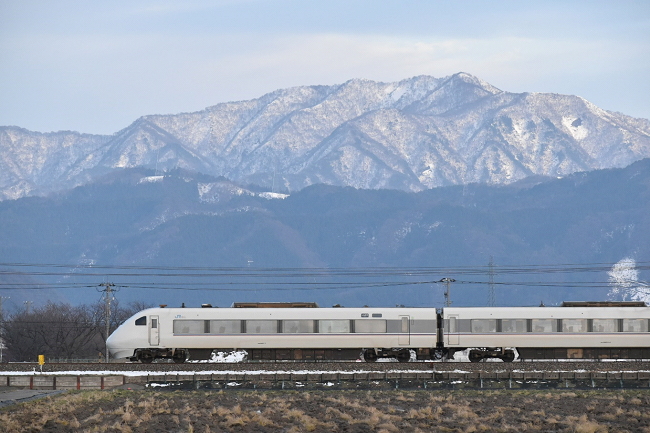 同じく場所でサイドから特急「しらさぎ9号」金沢行を撮影。残念ながら日が陰ってしましました。(2023.12.30 16:09)