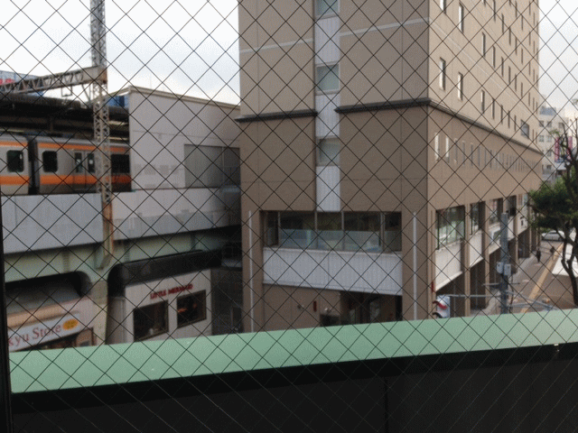 いや~、窓も開かないし、鉄道も上り線快速列車くらいしかきちんと見えません。写真で存在感のある建物は、ホテルメッツ高円寺です。このホテルも駅に隣接している割に、鉄道はよく見えないんです。高円寺駅北口からホテルまでの道順&ホテル外観については、下記の動画をご覧ください。
